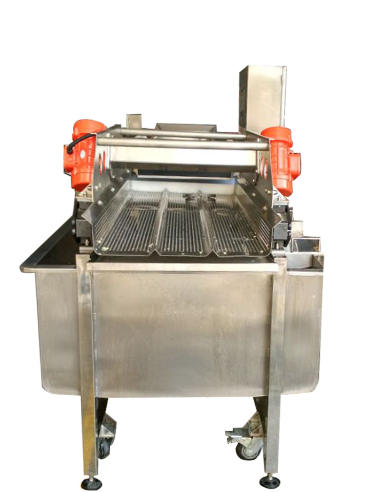 利用清洗凈水形成渦流,使物料處于渦流的凈水中清洗。物料被清洗時(shí),是和清洗水槽中的凈水一起作螺旋運(yùn)動,物料清洗后受水動力作用被推進(jìn)振動輸送機(jī)構(gòu),而送出清洗機(jī)。